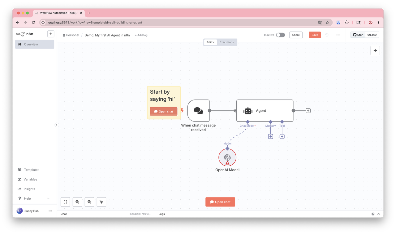 如果AI模型在输出面板或聊天界面中给出了回复,那么恭喜你!你基于n8n的AI自动化设置已经成功运行。