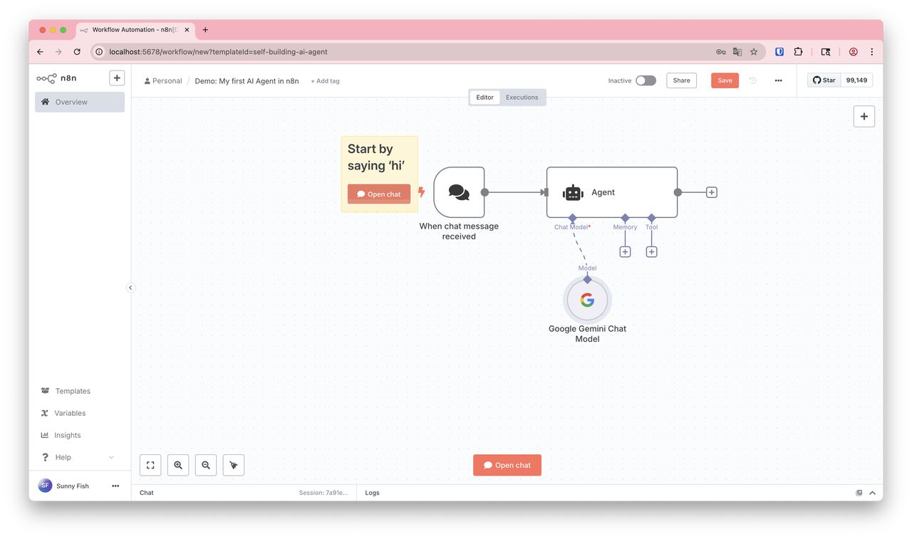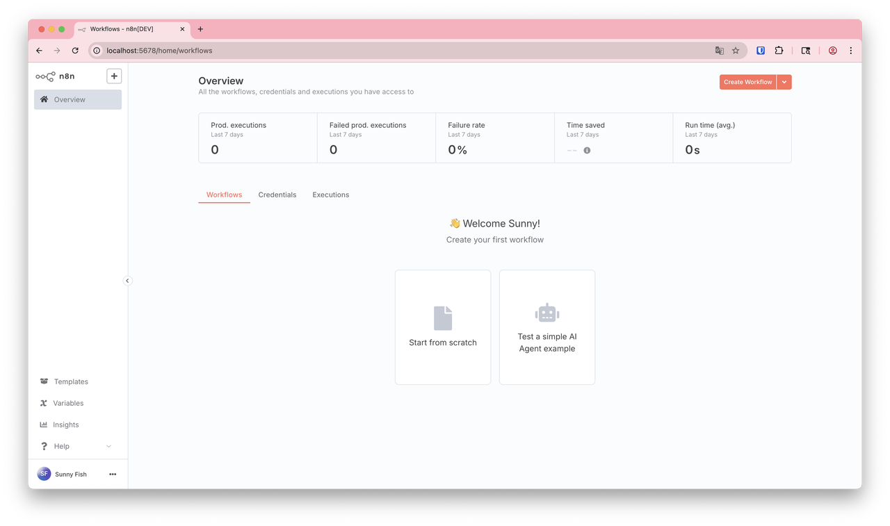 完成这些步骤后,你将进入n8n的主界面。欢迎来到你的自动化新天地!