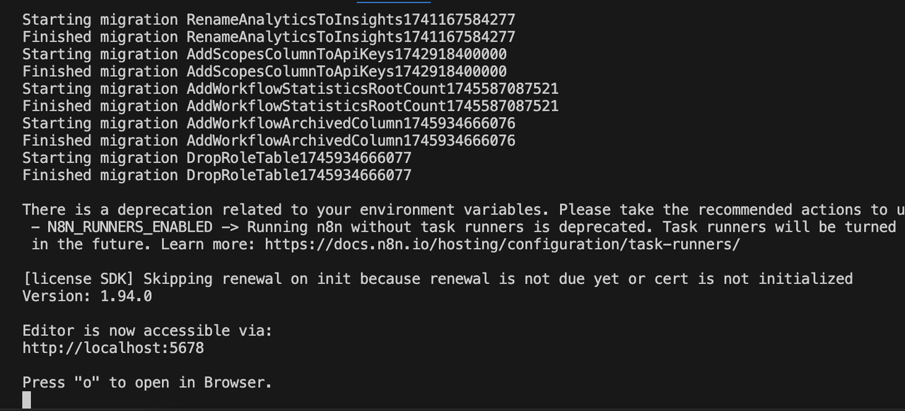 既然我们的Node.js环境已在ServBay的帮助下准备就绪,让我们来启动n8n。