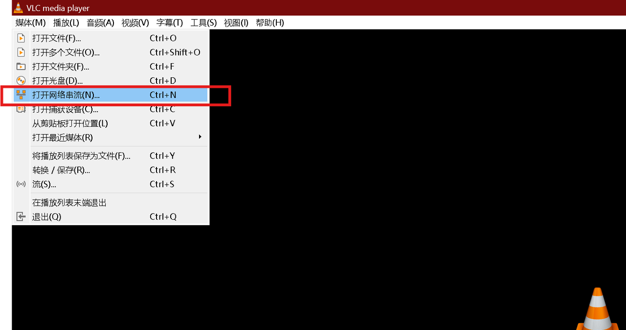 (1)打开 VLC → 媒体 → 打开网络串流