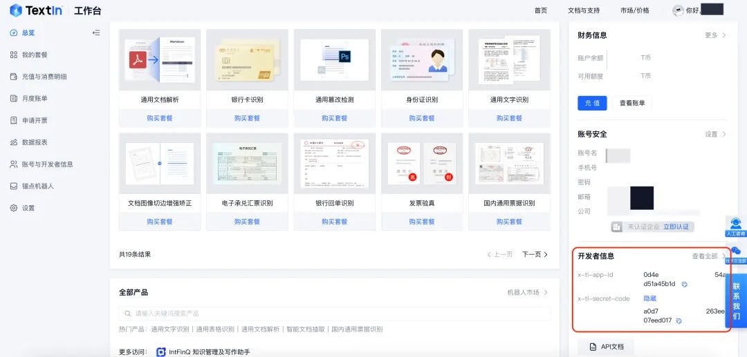 2、textin.com获取 app-id和secret-code信息