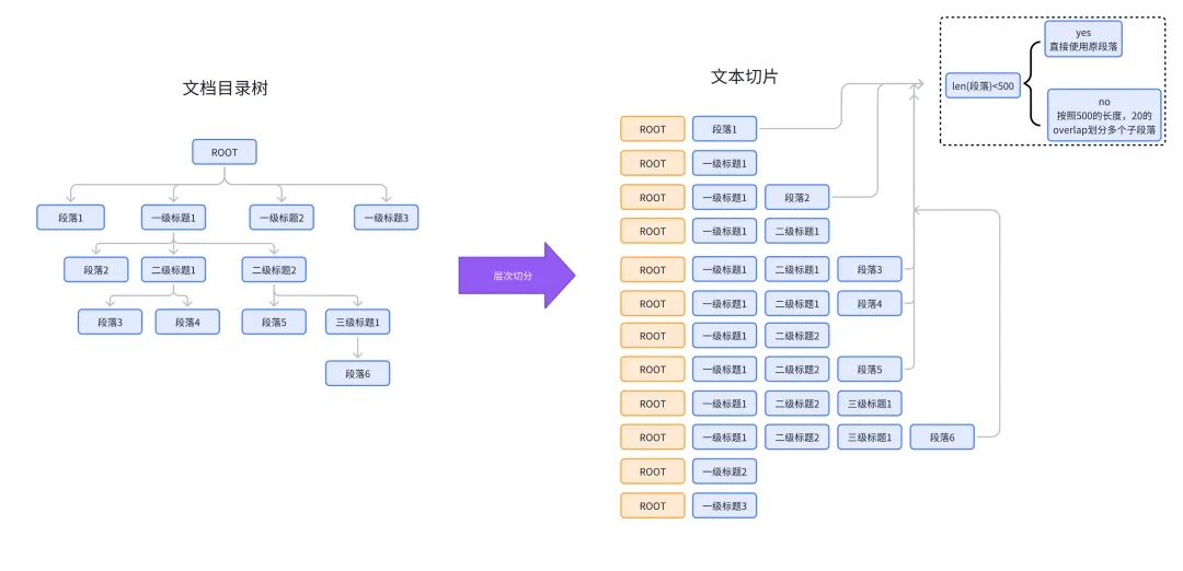 - 动态处理长内容:超长文本/表格按固定窗口切分,标题节点合并子内容。