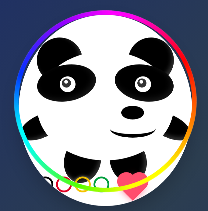 conic-gradient(锥形渐变) 来精准还原脸部那圈标志性的彩色光环,色彩过渡自然。 -
