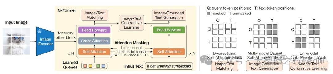 LLM本质上是个语言模型,自然无法直接接受其他模态的信息。所以如何把各个模态的信息,统一到LLM能理解的特征空间,就是第一步要解决的问题。为此,作者提出了Q-Former。