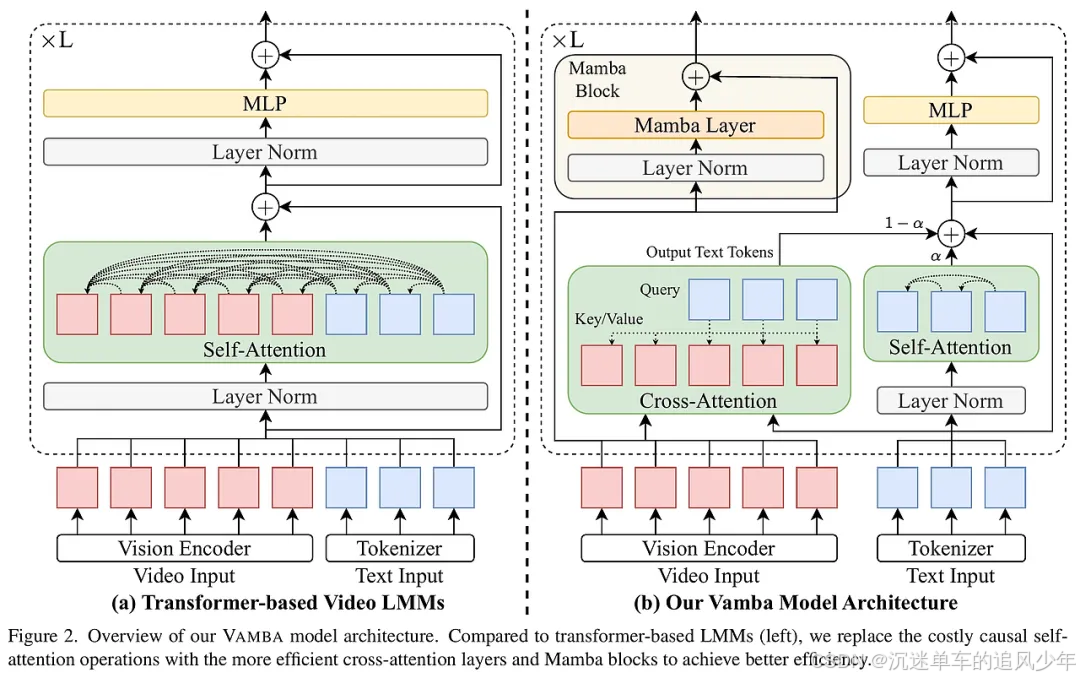 Mamba-2块:该模型使用Mamba-2块来处理视频令牌,通过线性复杂度的方式减少计算开销,避免了传统变压器模型中自注意力的二次复杂性。