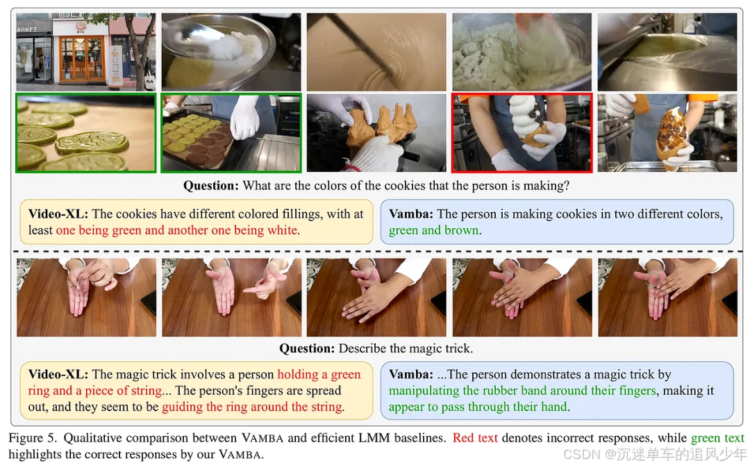 复杂度分析:通过将自注意力和交叉注意力的复杂度分开,VAMBA的复杂度从O(d(M + N)²)降低到O(dMN + d²M),在处理长视频时显著提升了效率。