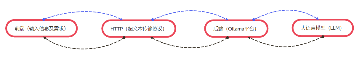 后端通过Ollama平台调用大语言模型并将响应结果在前端输出。