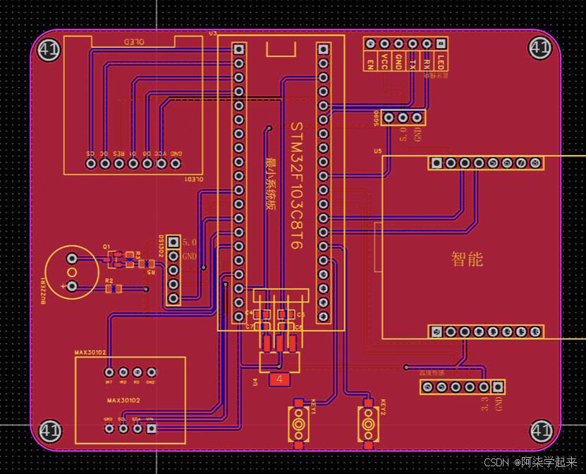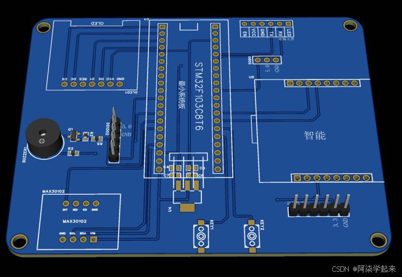- 使用心率传感器获取人体的心率血氧浓度等相关信息,当心率过高会自动进行心率的报警