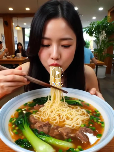 吃个面(文生视频,面汤抖动好真实),不过,多吃几口就不行了