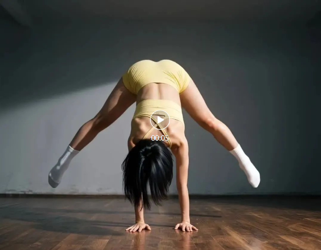 难度大一点,下面这个徒手倒立的动作(图生视频),我试过很多产品,都做不出来。而清影完成的视频,虽然从物理规律的角度来说还有进一步改进的空间(比如用力时,手臂应该更加弯曲一些),但画面本身已经很逼真了。