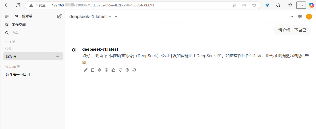 账号用于登录WEBUI,然后,我们就可以使用本地的Deepseek了: