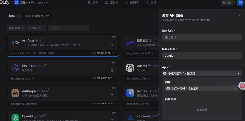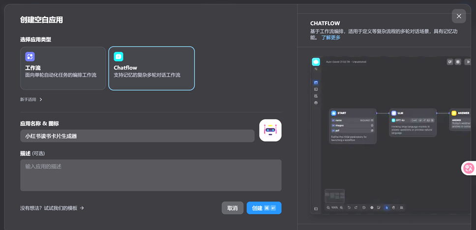 将插件添加到工作流应用中,get一个网站打开即可进行卡片生成。