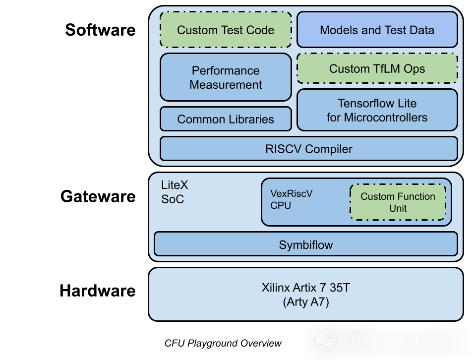 自定义功能单元(CFU)是利用谷歌发布的 CFU-Playground 框架(https://google.github.io/CFU-Playground/)开发的,该框架便于设计用于提升基于 FPGA(现场可编程门阵列,一种可以通过软件重新配置硬件功能的芯片)的软 CPU 的机器学习处理器。
