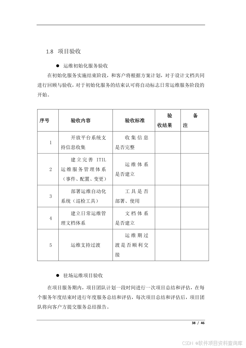 工作安排任务书,可行性分析报告,立项申请审批表,产品需求规格说明书,需求调研计划,用户需求调查单,用户需求说明书,概要设计说明书,技术解决方案,数据库设计说明书,详细设计说明书,单元测试报告,总体测试计划,单元测试计划,产品集成计划,集成测试报告,集成测试计划,系统测试报告,产品交接验收单,验收报告,验收测试报告,压力测试报告,项目总结报告,立项结项审批表,成本估算表,项目计划,项目周报月报,风险管理计划,质量保证措施,项目甘特图,项目管理工具,操作手册,接口设计文档,软件实施方案,运维方案,安全检测报告,投标响应文件,开工申请表,开工报告,概要设计检查表,详细设计检查表,需求规格说明书检查表,需求确认表,系统代码编写规范,软件项目质量保证措施,软件部署方案,试运行方案,培训计划方案,软件系统功能检查表,工程试运行问题报告,软件合同,资质评审材料,信息安全相关文档等。建设方案部分资料清单: