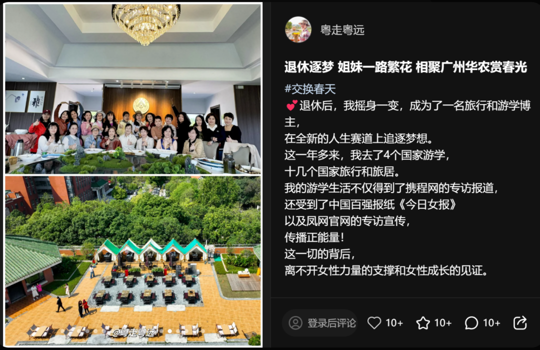 在这篇笔记下,不少同龄阿姨留言询问“酒店是哪一家”、“有没有强推的景点”等等。更有网友时隔1个月后晒出了同款打卡照,阿姨们互相之间的安利,朴实且有效。