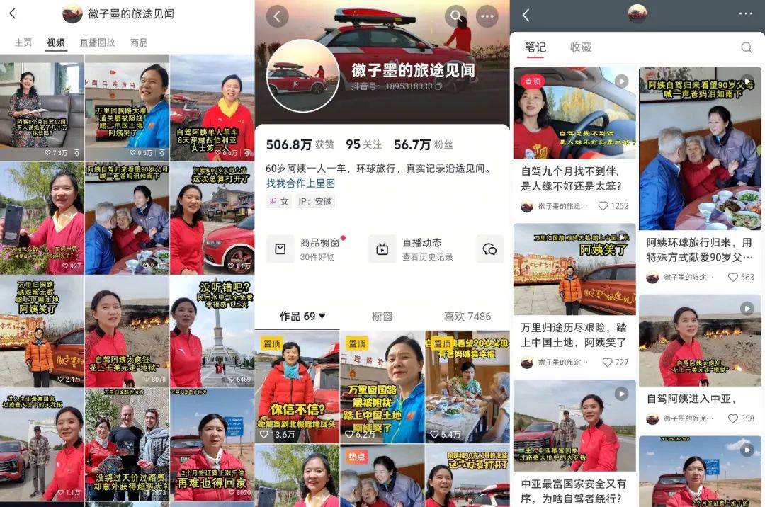 最早从B站、抖音平台出圈的旅游达人“50岁阿姨自驾游”(本名苏敏),在入驻小红书后,快速成长为平台上旅游赛道的头部博主。