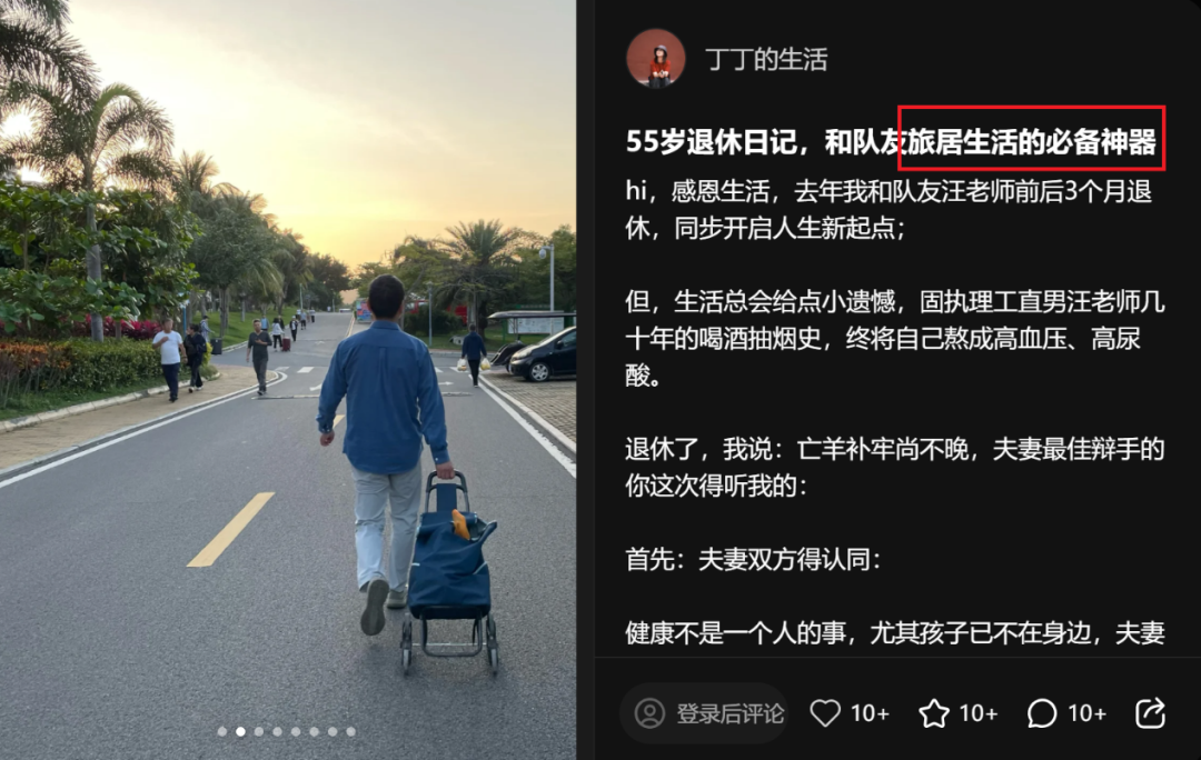 例如小红书上的一位银发旅游KOL在连续通过几篇笔记推荐云南的旅居地后,评论区便会出现不少网友留言“这地方适合过冬吗”、“怎么联系,我想带爸妈去住一个月”等。