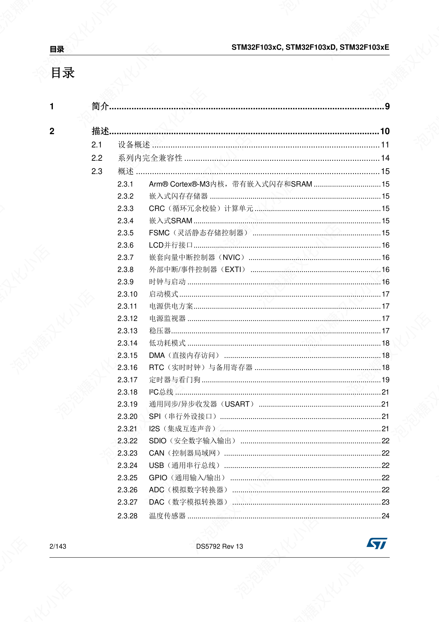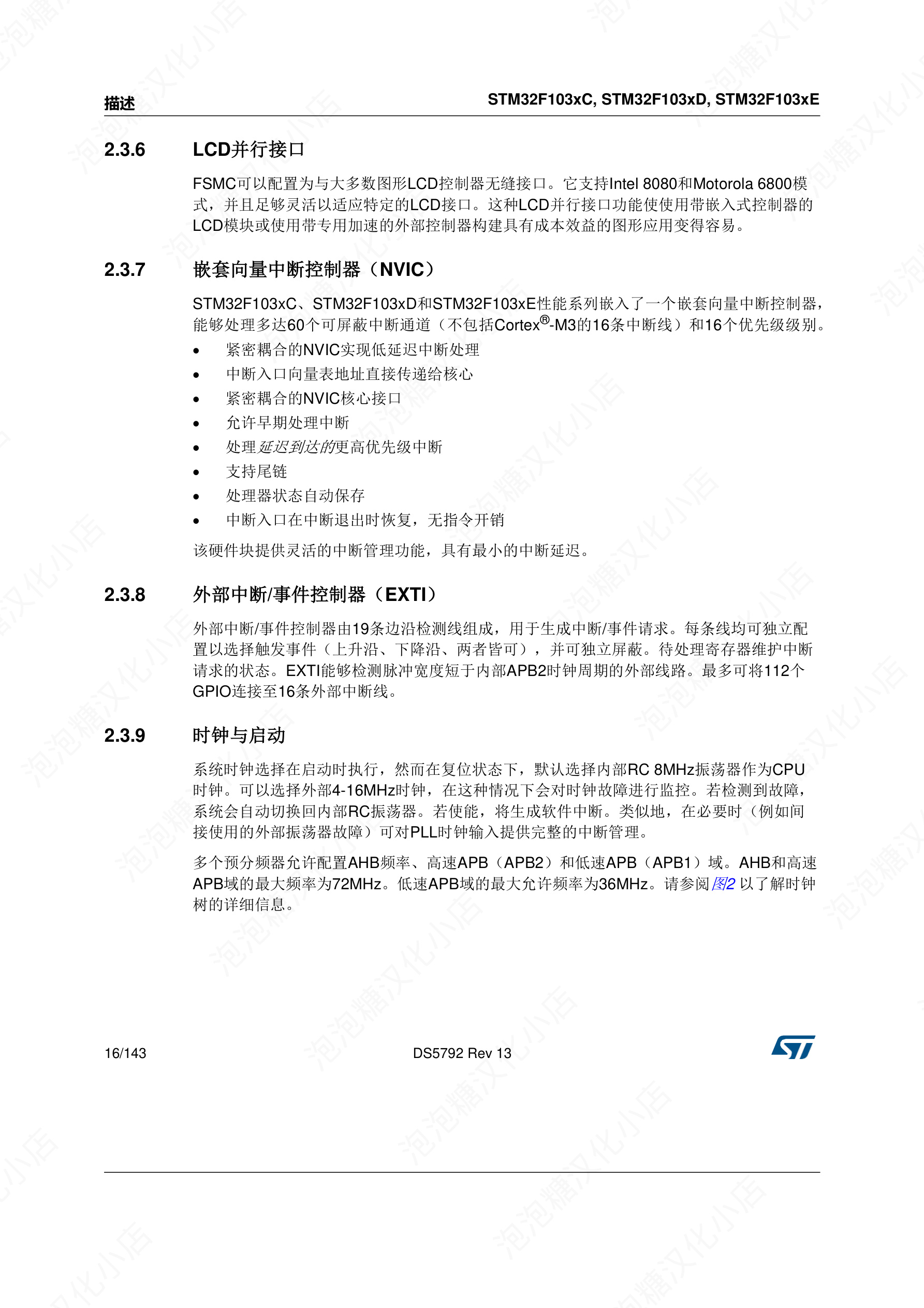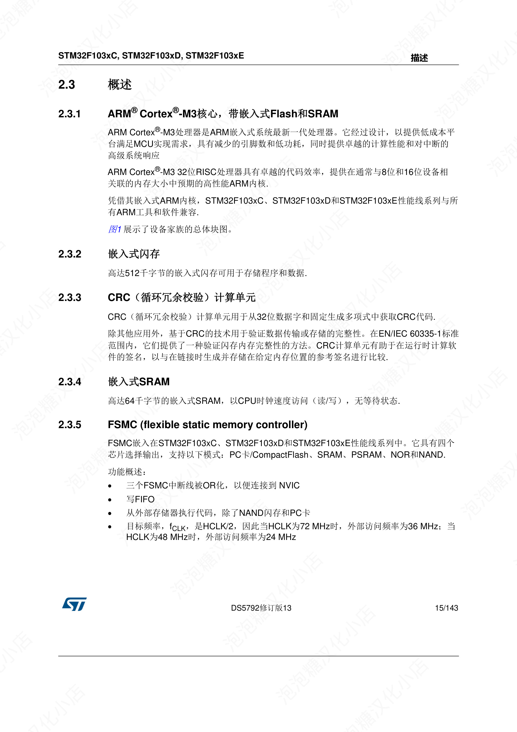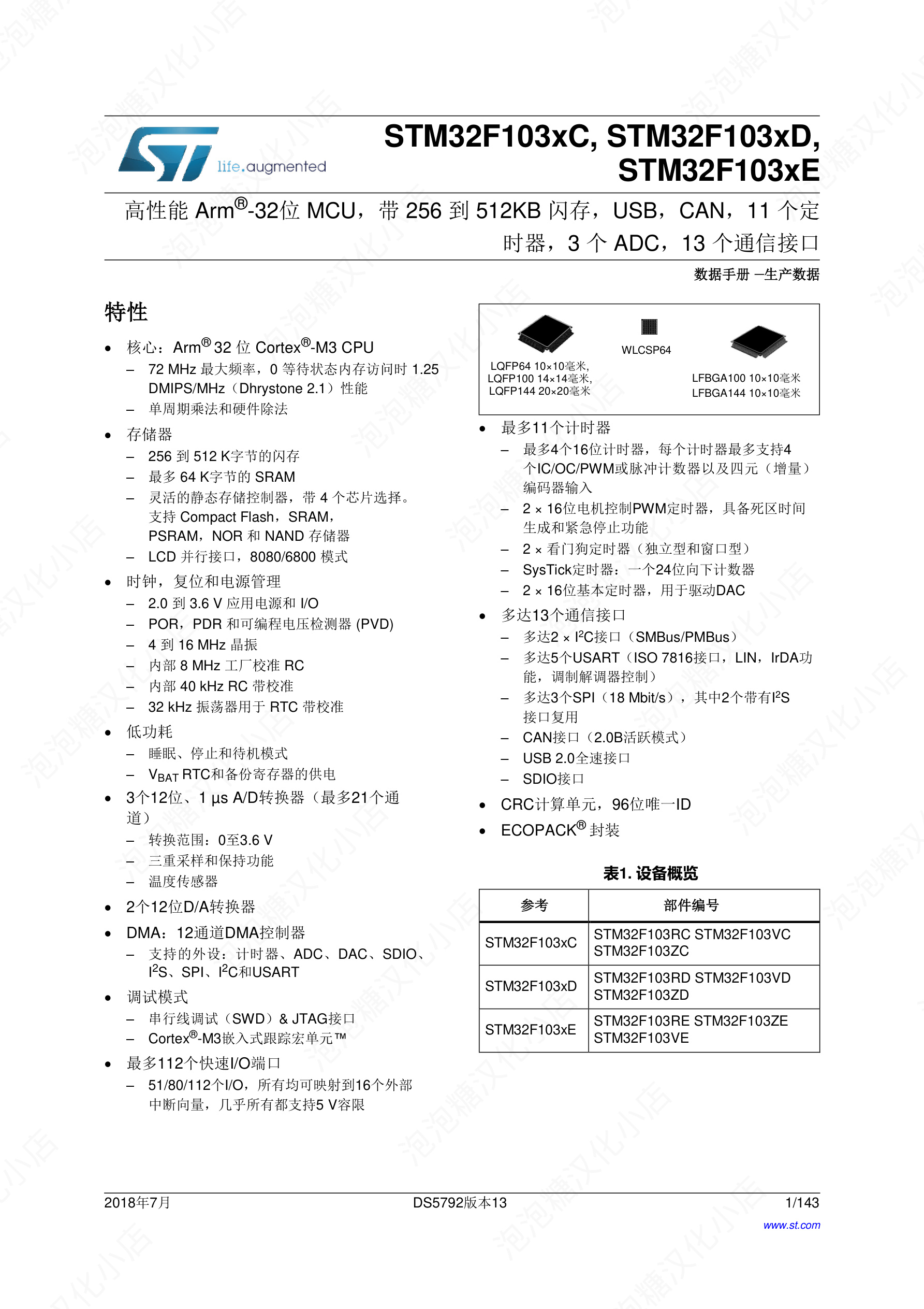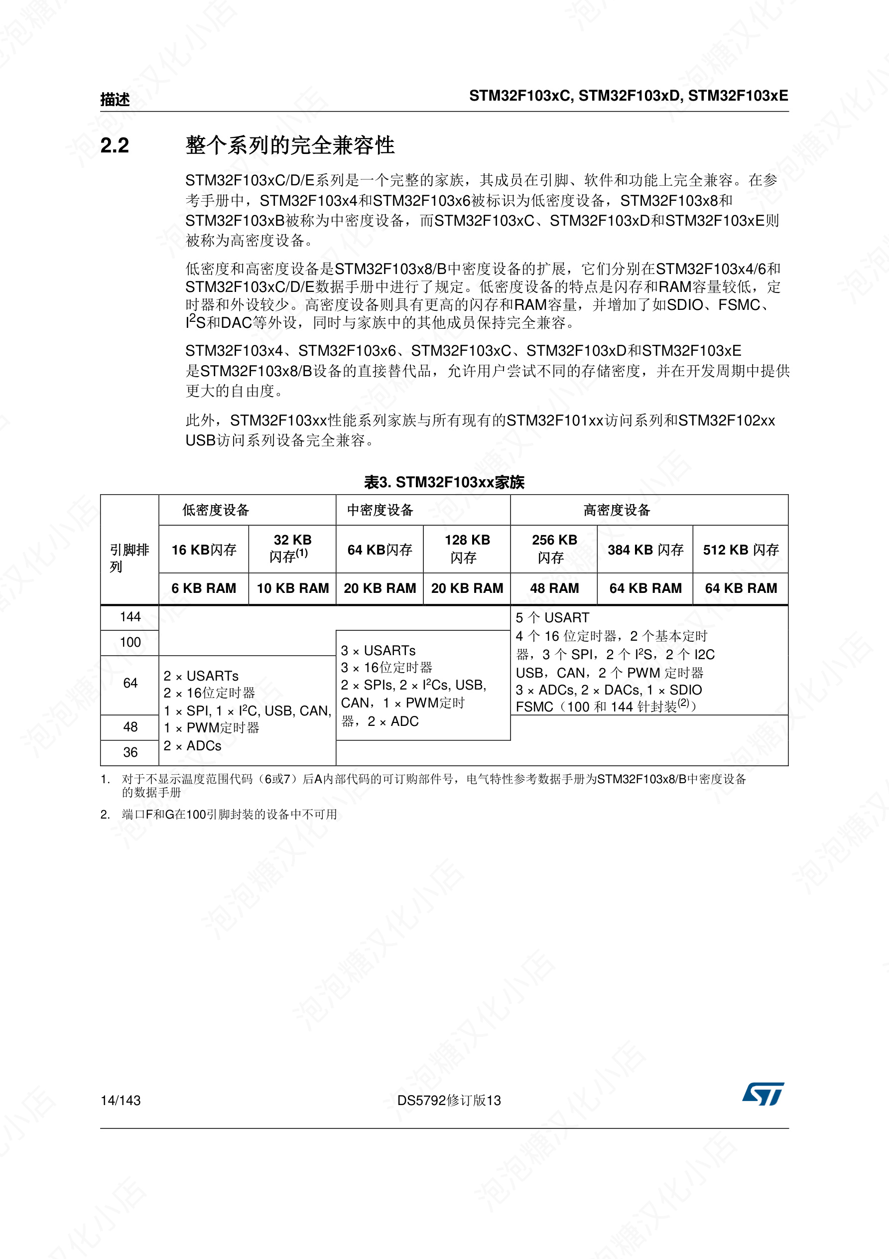 STM32F103xC/xD/xE文档中文版发布(136页完整汉化)
