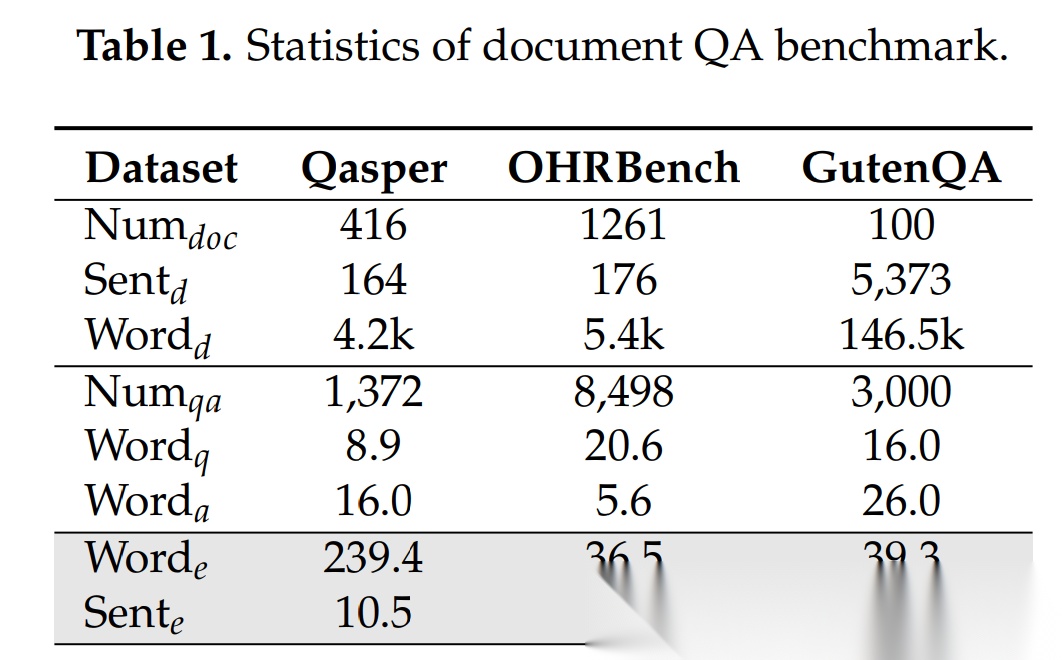 表1:主流 RAG 基准的证据极度稀疏,导致“切得好/切得差”在端到端指标上几乎无差别。