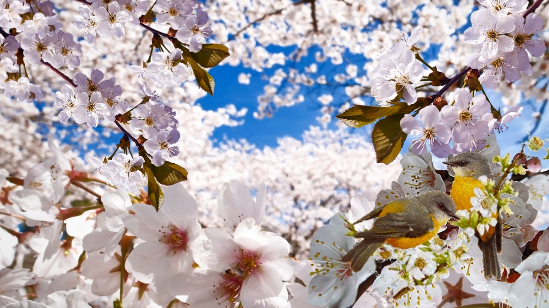 B站、抖音、YouTube 的Vlog背景(如《清新树叶》《浪漫桃花》)。