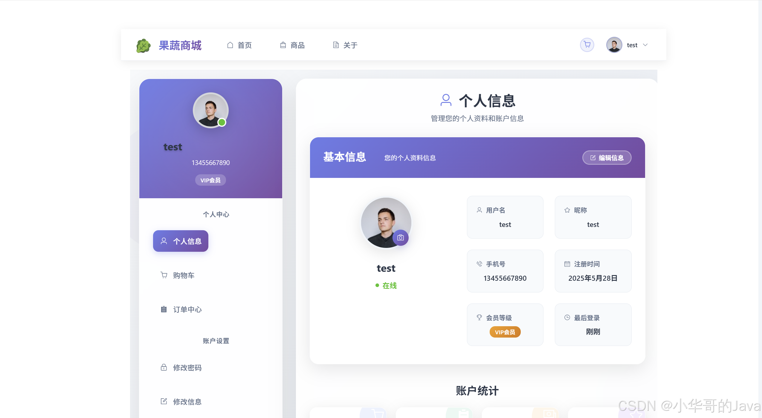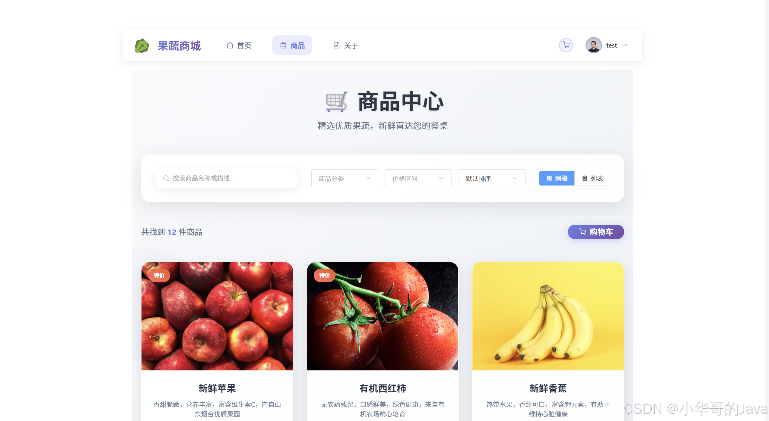 果蔬商城是一个功能完整的电商系统,专注于新鲜果蔬的在线销售。系统采用现代化的前端技术栈,提供美观的用户界面和流畅的用户体验。