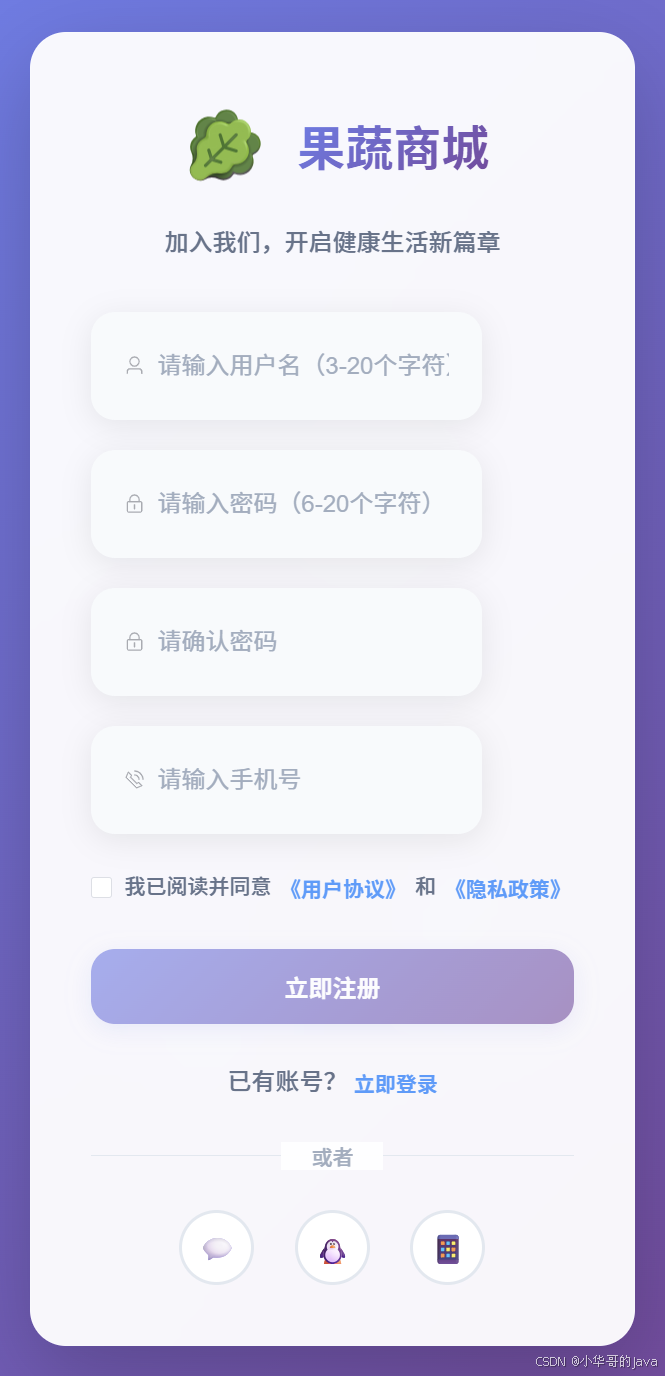 - 用户注册 - 支持用户名、密码、手机号注册,包含表单验证