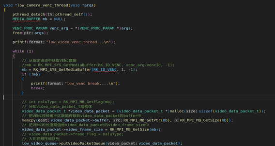 low_camera_venc_thread线程最重要的作用是获取分辨率1280 * 720的编码数据,并且入到LOW_VIDEO_QUEU队列