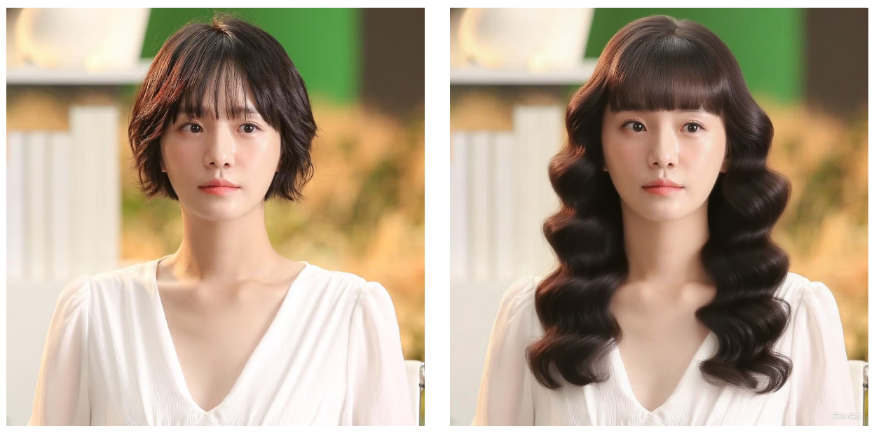 提示"提示词:根据图片中女生的脸型,换成一个复古长卷发