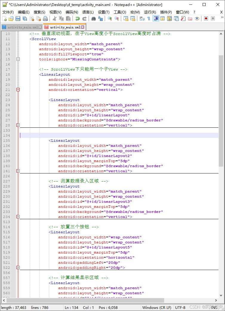 老版本只有一个“activity_main.xml”文件,所有的功能组件都是放在这个xml文件中。