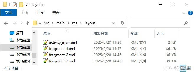 新版本则因为拓展到三个页面,并要实现页面的水平切换,因此用到了Fragment结构,xml文件变成了4个。“activity_main.xml”文件中,只放了翻页视图ViewPager2组件和翻页便签栏TabLayout组件,用于显示Fragment及标签栏。3个fragment文件中则放置了计算用的组件,以应对不同的工作场景。