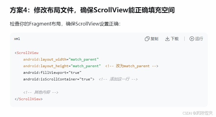 我这次没有按推荐顺序尝试,而是先按方案6修改Fragment布局文件,没能解决问题,之后我再尝试了方案8,结果成功了。