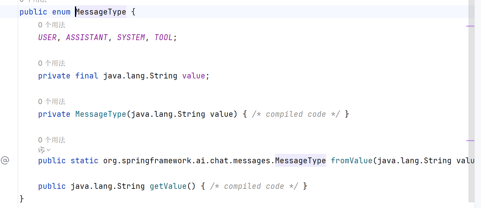 enum MessageType是一个枚举类,里面就是提示词的四大角色: