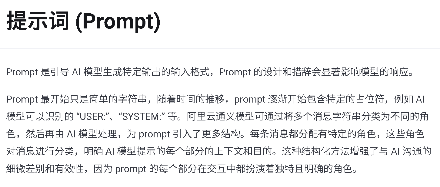也就是说,提示词就是我们与大模型之间进行对话的时候特定的输出格式和回答的响应,所以后面如果进行调优的时候,提示词是很重要的。