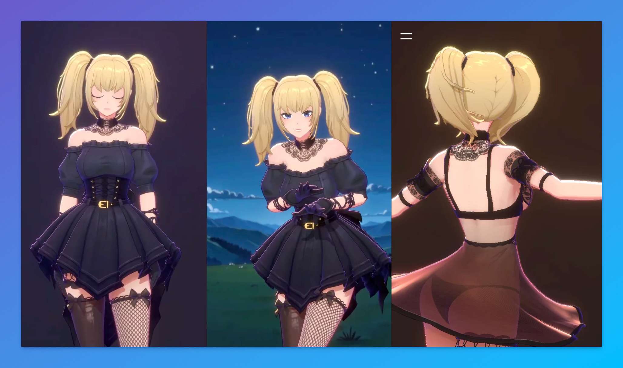 Ani:金发萝莉风,穿黑色紧身裙,说话带点撒娇风、调情感,还能“陪跳舞”、“说情话”;