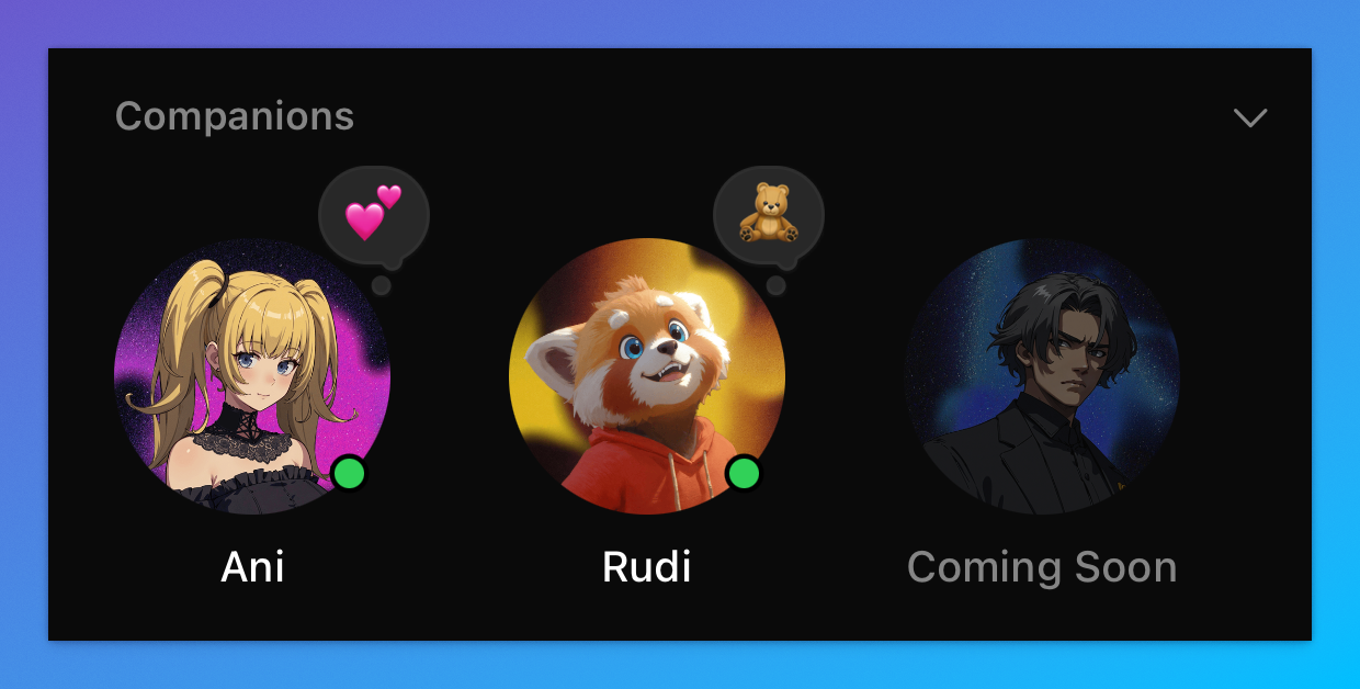 当前 Companions 模式中,xAI 共上线了两个角色: