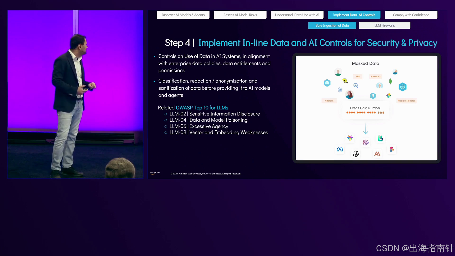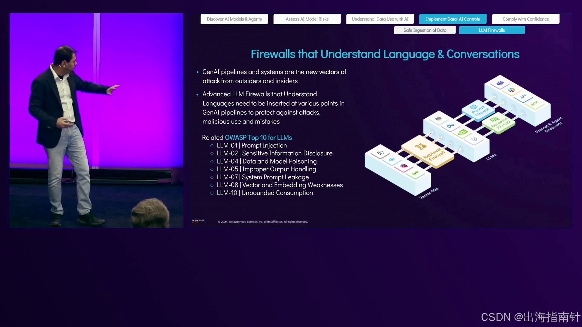关键字: [Amazon Web Services re:Invent 2024, 亚马逊云科技, 生成式AI, OVAS, Mitigate Owasp Risks, Secure Genai Applications, Unstructured Data Governance, Holistic Security Controls, Automated Compliance Assessment]