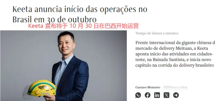 美团旗下外卖品牌《Keeta》将于10月30日在巴西正式启动运营,首批试点城市为圣保罗州的桑托斯和圣维森特。美团计划5年内在巴西投入10亿美元支持外卖业务的发展,并在2025年底前将服务覆盖至圣保罗市。目前,已有700多个餐饮品牌在《Keeta》上成功注册。美团内部希望《Keeta》的外卖市场规模能达到千亿美元级别。然而,巴西外卖市场竞争激烈,本土品牌《iFood》占据86%的市场份额,滴滴旗下的《99Food》也在迅速扩张,美团面临巨大挑战。