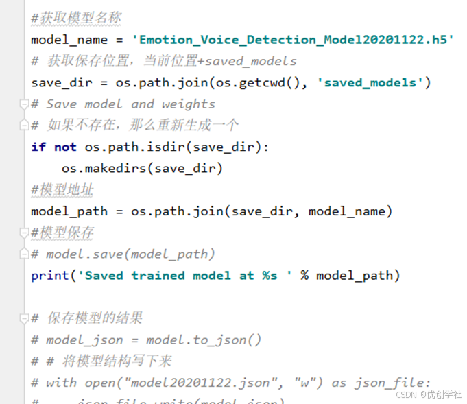 图 3-12 是对卷机神经网络的保存,通过调用model.save()函数来达到保存神经网络的目的。本次设计还保存了网络的模型结构。