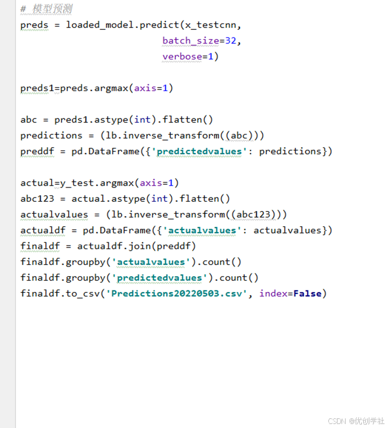 下面进行操作是对网络模型的保存,然后用训练好的模型对测试数据进行预测,从而达到预测人的情绪的目的。