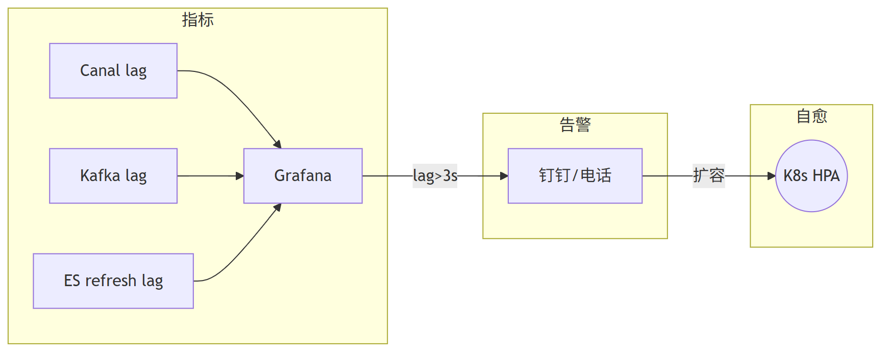 当检测到延迟超过阈值时,系统能够自动触发扩容操作,同时通过钉钉、电话等方式通知相关人员,确保问题及时得到处理。