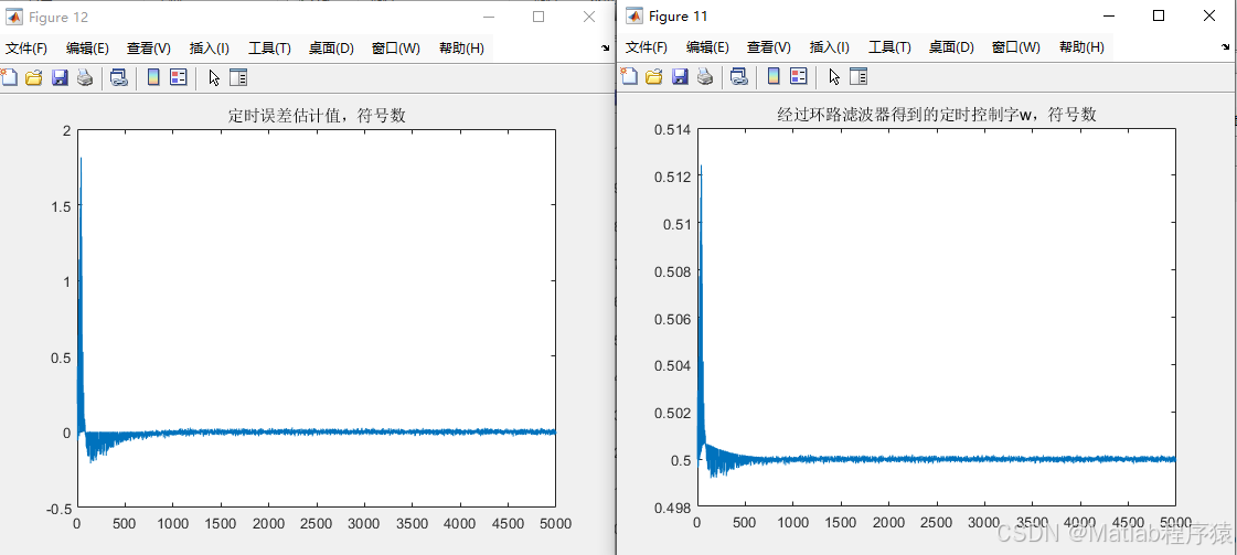 载波同步完成后,系统进一步实施符号时钟同步,确保每个符号在最佳时刻被采样。Gardner算法基于对相邻采样点与中点信号的零交叉与峰值特征构建时钟误差信号,并将其输入二阶环路滤波器更新定时NCO,从而自动调整采样时钟,实现对时间漂移与残余频偏的不敏感自适应恢复