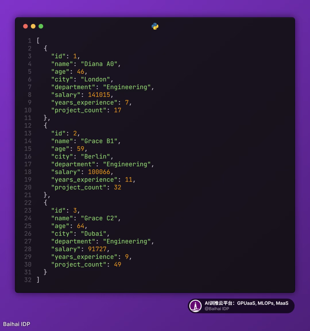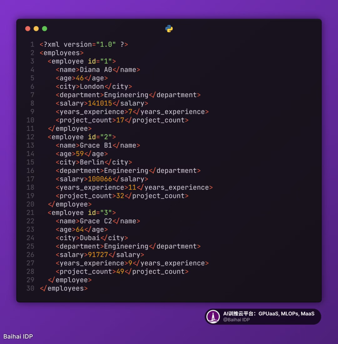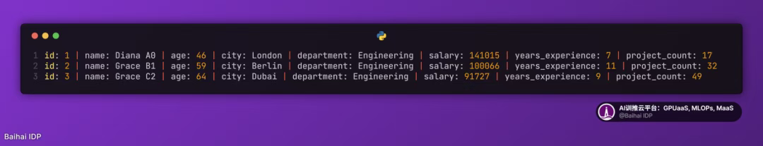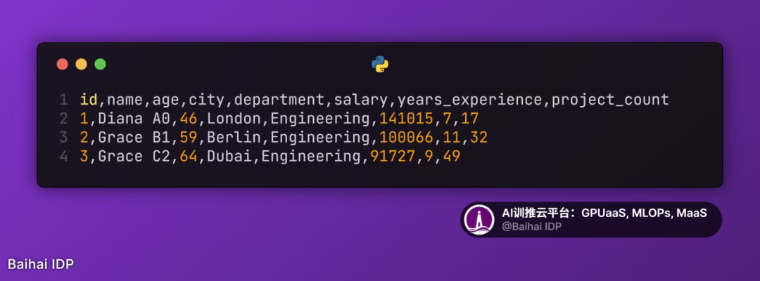 - 数据集:包含 8 个属性(ID、姓名、年龄、城市、部门、薪资、工作经验、项目数量)的 1000 条虚拟员工记录
