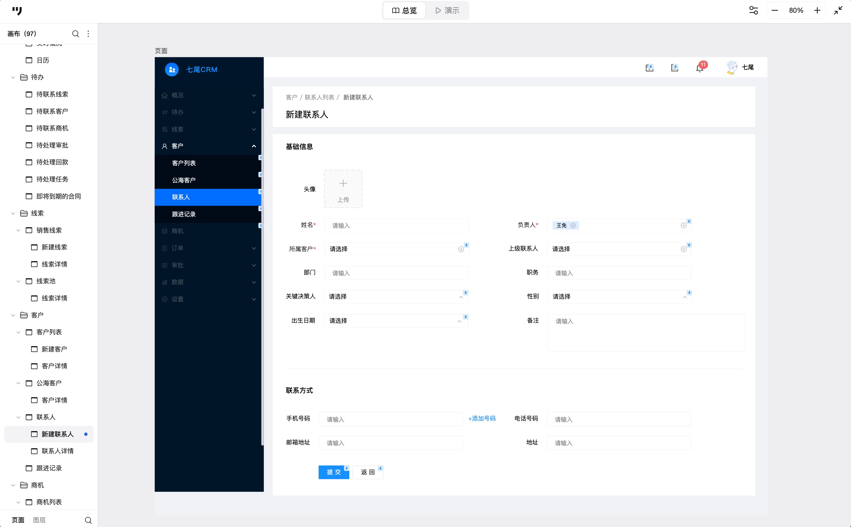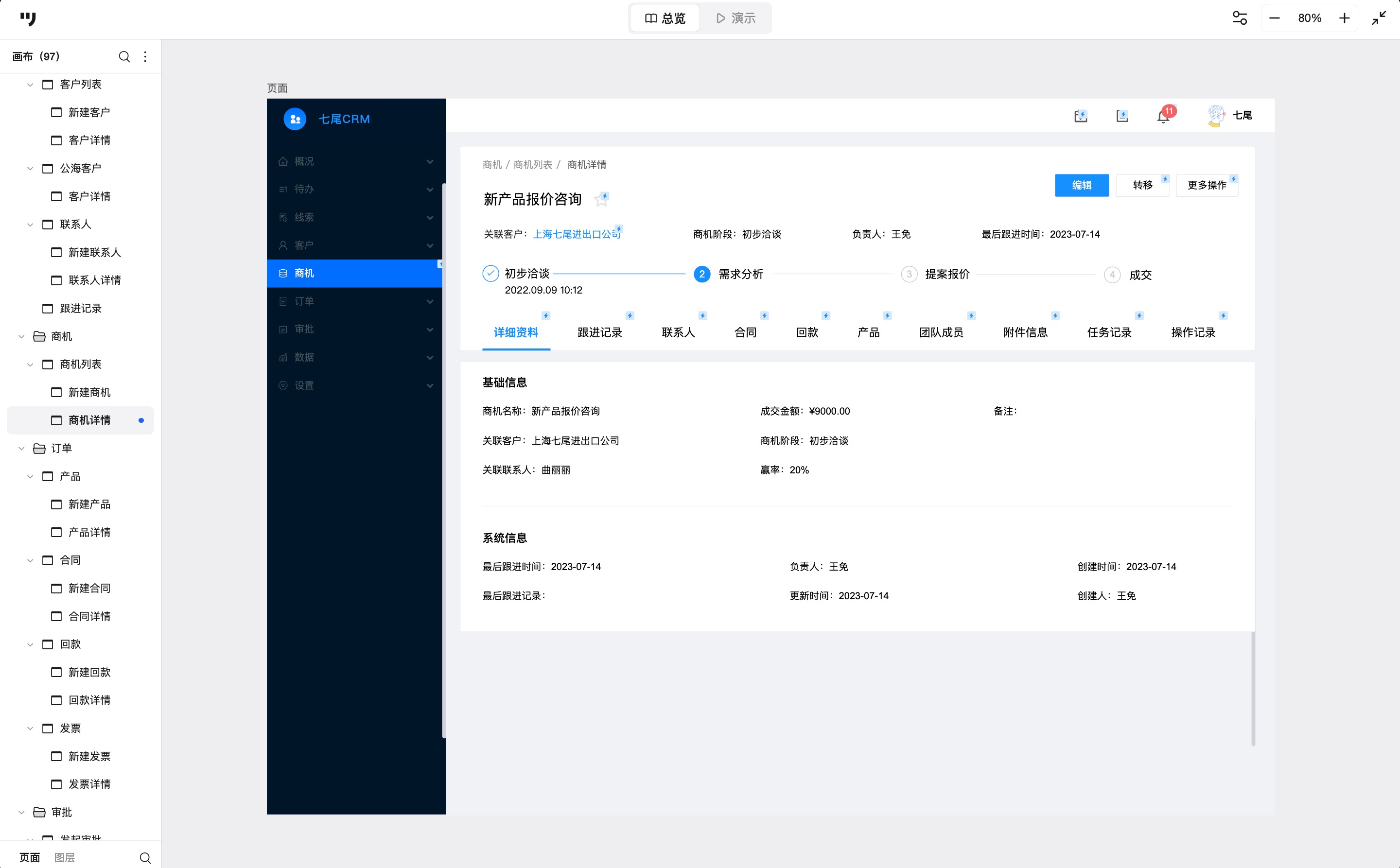 本文结合一个CRM客户关系管理系统高保真原型设计案例,拆解主要页面的设计思路,并分享一些提高设计效率的方法,供正在做相关项目的同学参考。