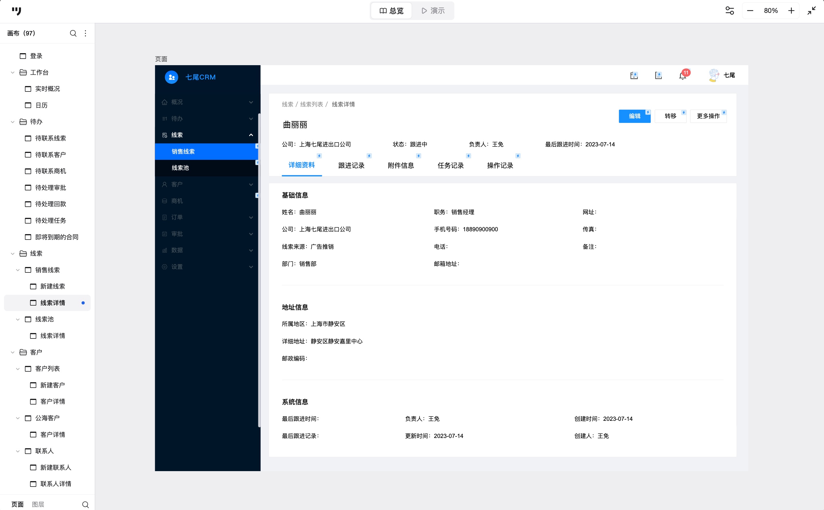 CRM客户关系管理系统是很多企业都会使用的工具,它的作用不只是保存客户资料,还能帮助销售团队跟进线索、管理商机、统计业绩。对产品经理来说,如何把这些功能梳理清楚,并且呈现出一套高保真的原型图呢?