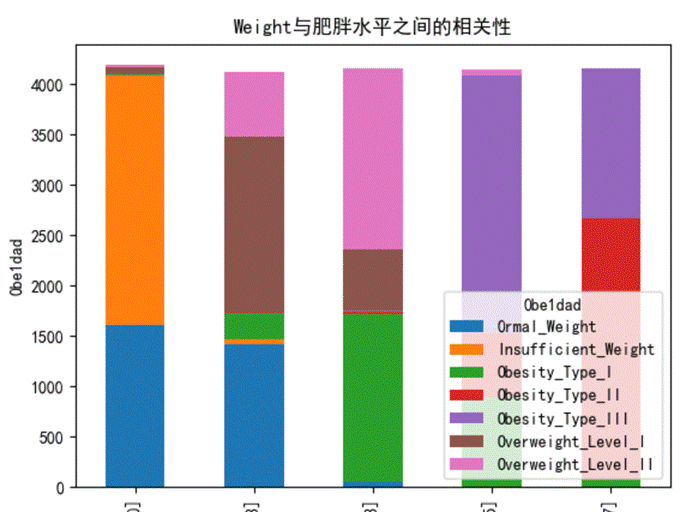 图 2 Weight与肥胖水平之间的相关性