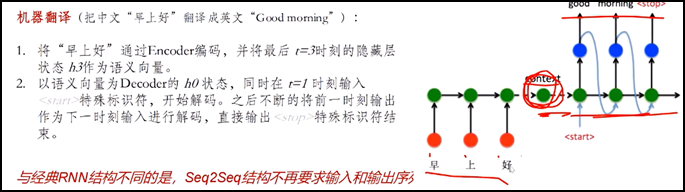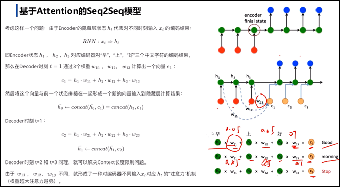 l Seq2Seq模型:不要求输入和输出序列长度可以变化、可以不同。Content向量本质就是最后一个隐藏层状态、是一组浮点数,长度是隐藏层神经元数量。