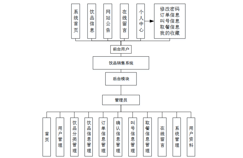 系统功能结构图是系统设计阶段,系统功能结构图只是这个阶段一个基础,整个系统的架构决定了系统的整体模式,是系统的根据。饮品销售系统的整个设计结构如图4-1所示。