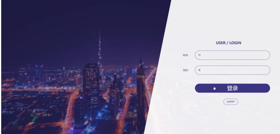 登陆界面利用表单输入,点击登录按钮会将表单通过相关接口提交给前台,前台验证通过会返回用户的对应Token信息,将Token信息存储到浏览器Session Stroge中,保证浏览器可以判断用户是否未登录状态。反之,如果该用户不存在,前台会返回对应的提示信息。