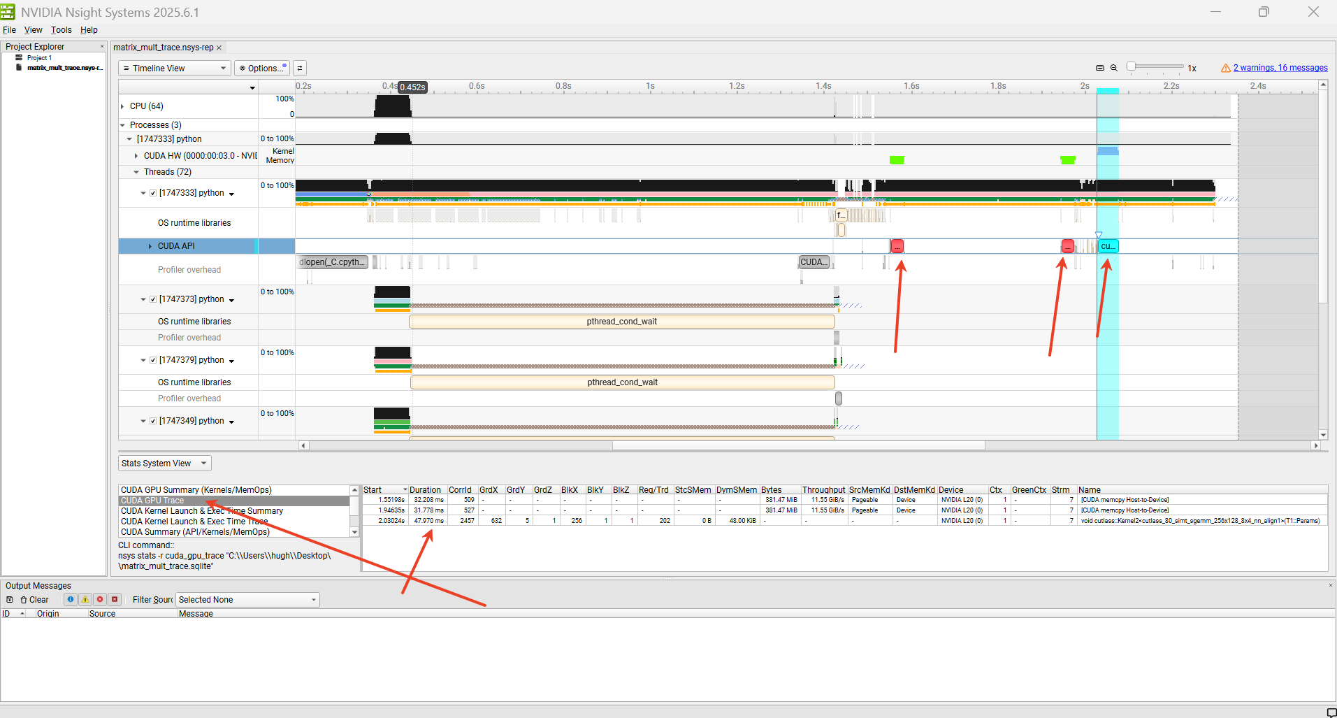 (vllm_python312) [work@iZuf6hp1dkg31metmko4pbZ test]$ nsys profile --trace=cuda,nvtx,osrt --output=matrix_mult_trace --force-overwrite true python test_gpu.py