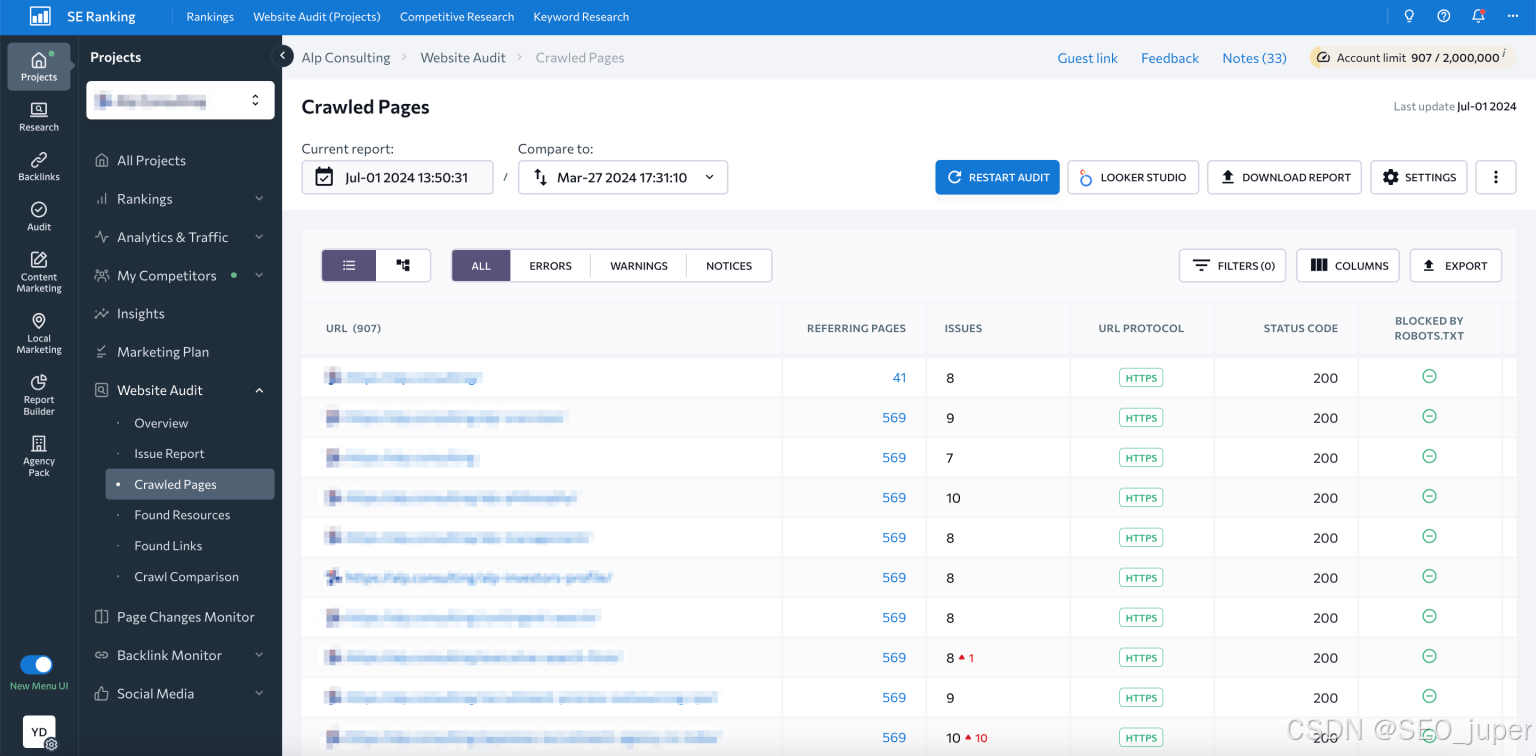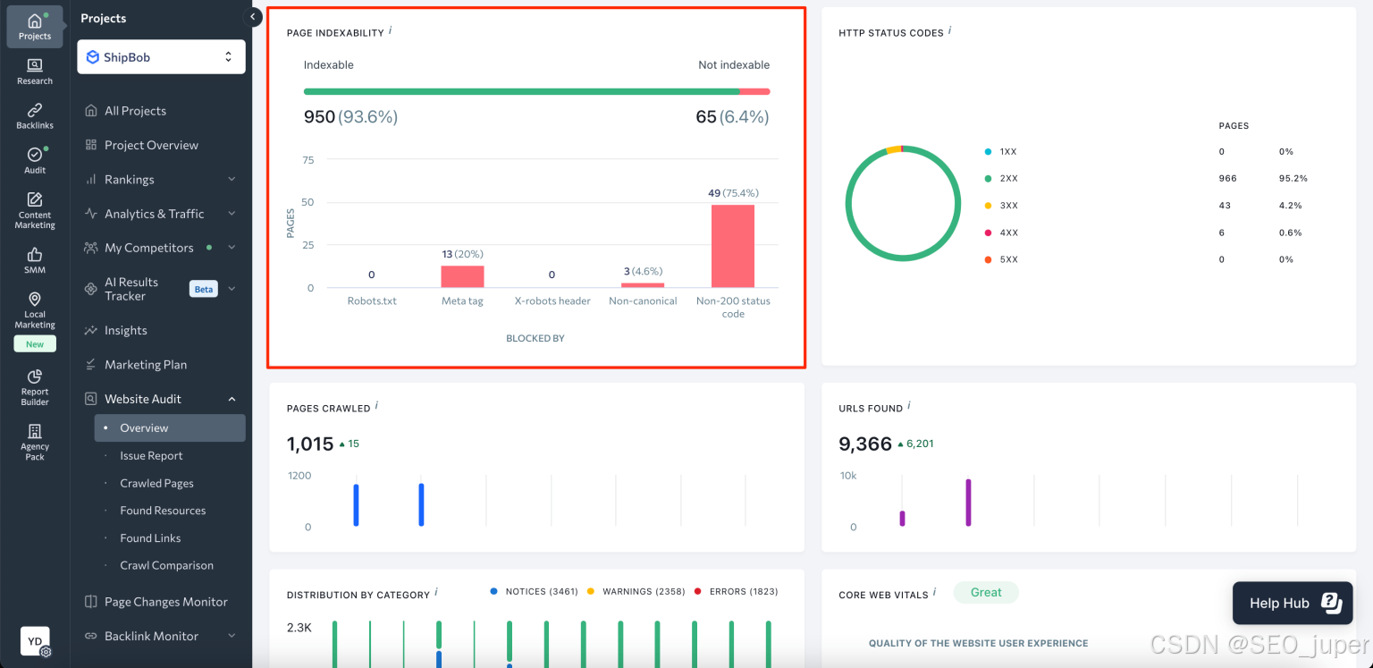 例如SE Ranking的网站审计工具可即时执行SEO审计,并在数分钟内生成深度索引报告,助您立即着手修复检测到的问题。
